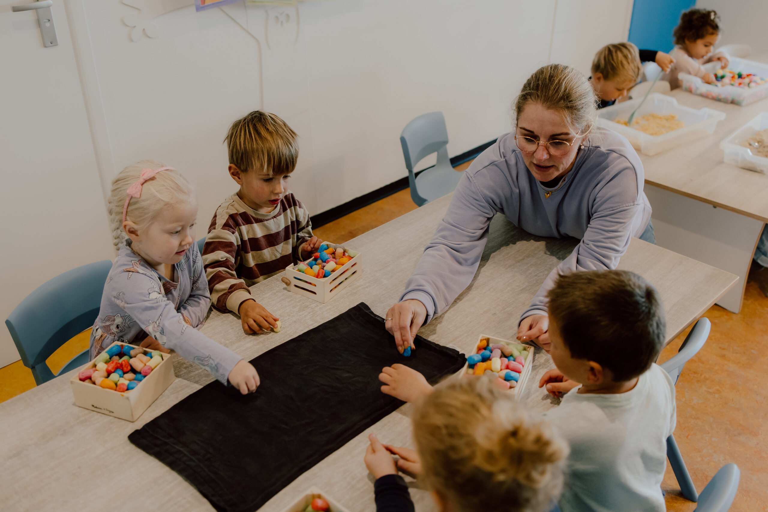 Onze babygroep bestaat per dag uit maximaal 14 kinderen in de leeftijd van 3 maanden tot ongeveer 28 maanden die worden begeleid door twee of drie gediplomeerde pedagogisch professionals.
