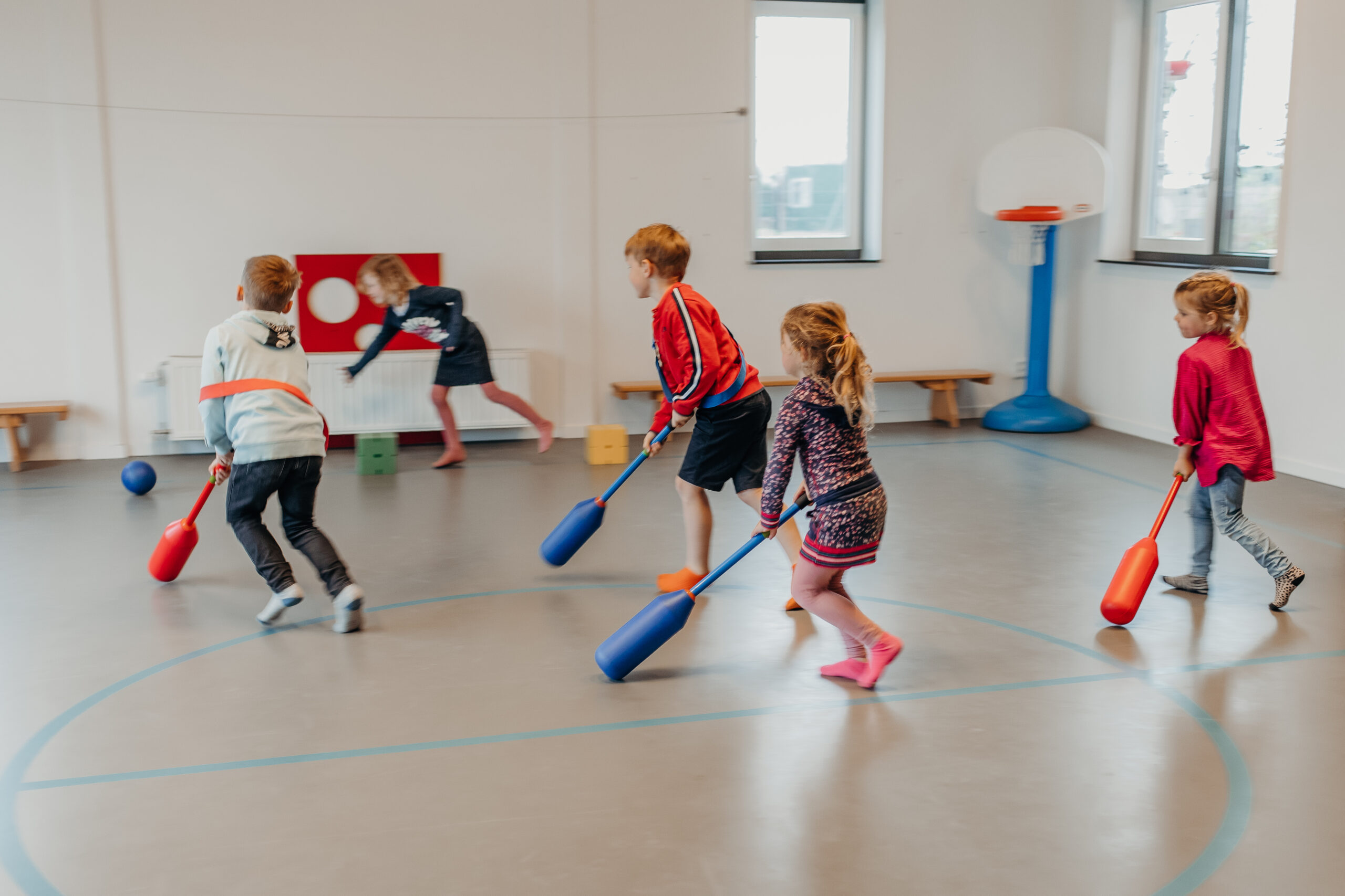 Doordat wij de kinderen veel in kleine groepjes laten spelen, kunnen wij de kinderen ‘zien’ en inspringen op hun behoeften. We letten erop dat spelletjes in teamverband niet altijd competitiegericht zijn. Kinderen mogen ervaren en ontdekken zowel binnen in onze groepsruimte als buiten op het schoolplein of de naastgelegen speeltuin. In de gymzaal van de school krijgen de kinderen veel bewegingsactiviteiten aangeboden op het gebied van sport en spel.